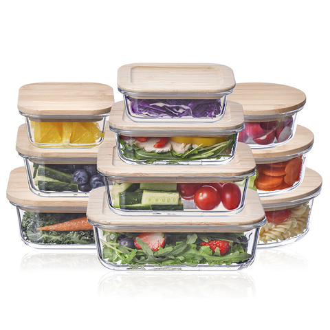 竹製木製蓋ランチボックス付き気密ガラス容器