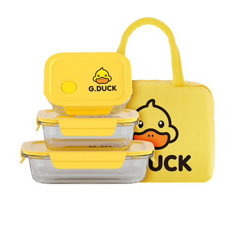 新デザインGダックファッションスタイル高ホウケイ酸ガラスクリスパーボックスランチボックス電子レンジセット