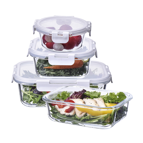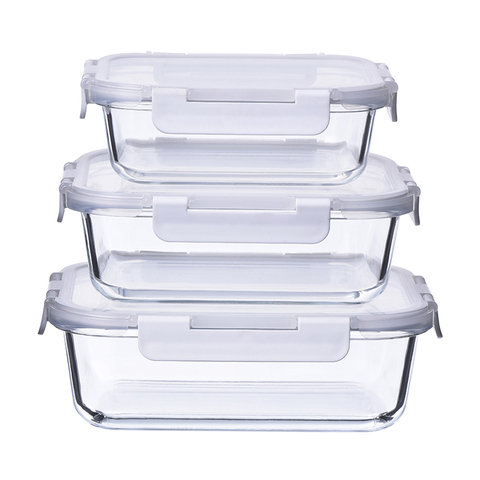 高ホウケイ酸ガラス食品保存セット長方形ガラス容器蓋付きランチボックス