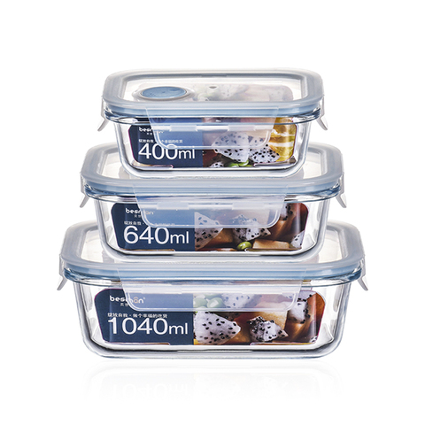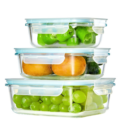 売れ筋410 + 680 + 1040 mlスリーピース/セットガラス食品フレッシュキーピングボウル耐熱断熱ランチボックス食品容器